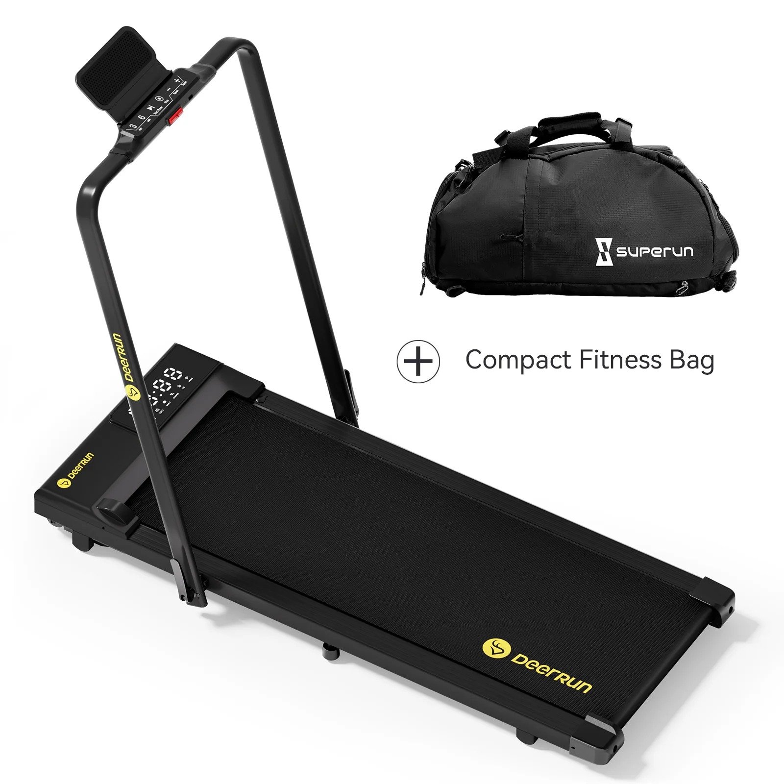 DeerRun A5 Pro Smart 2 in 1 Folding Treadmill Black with Handrail, 300 Lbs